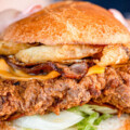 Southern fried chicken breast, cheese, lettuce, tomato, avocado, aioli & hot chilli sauce.